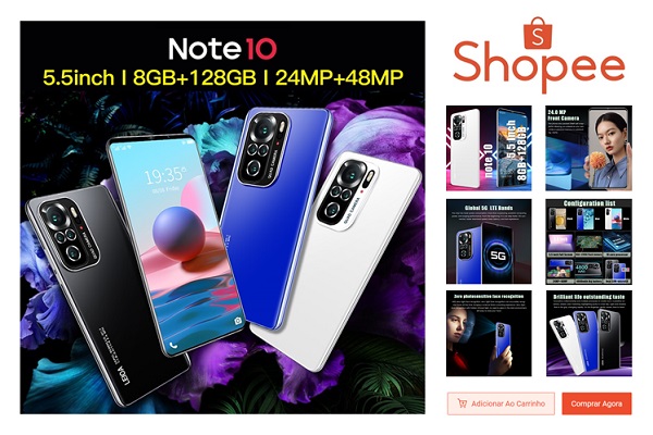 Smartphone Note 10 Pro 5.5 Polegadas 8GB RAM 128GB ROM Dual Sim.